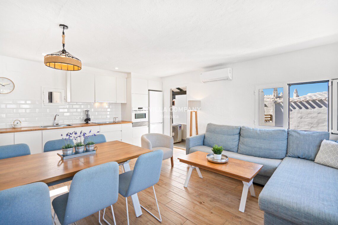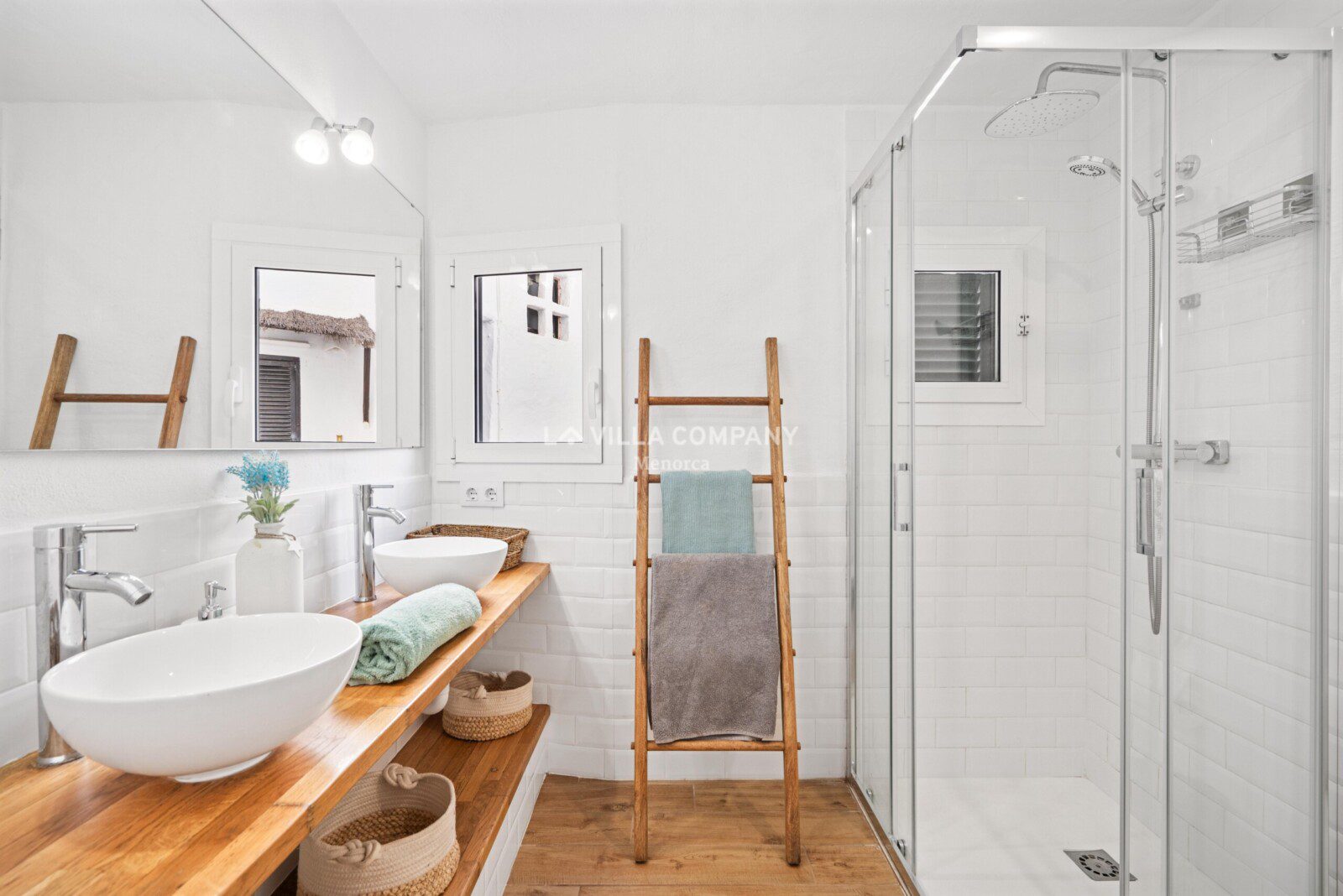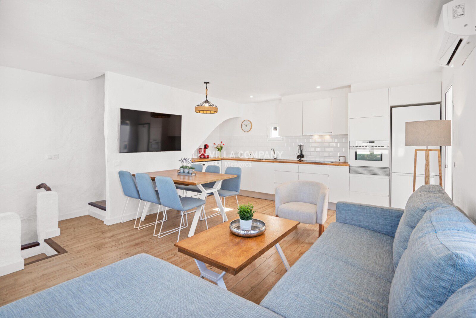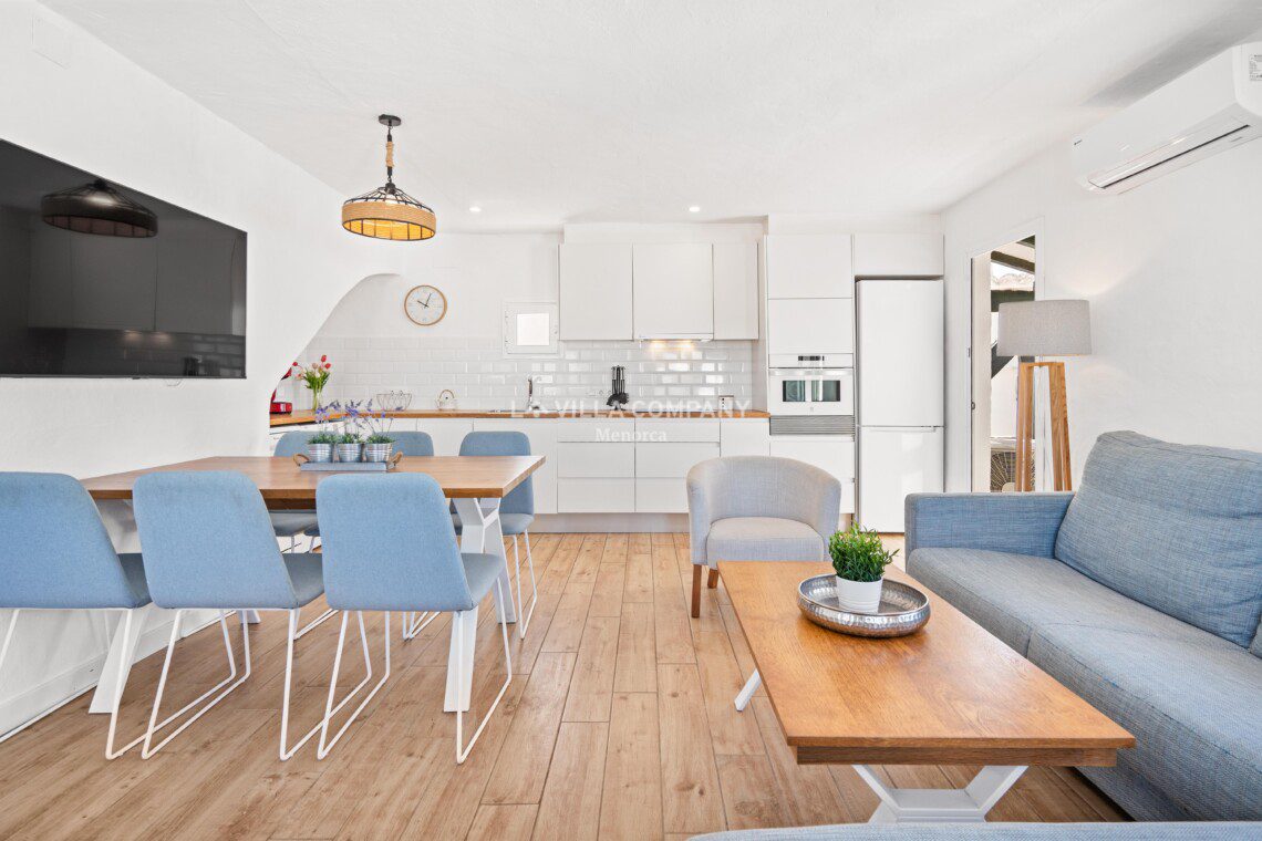Apartment Binibeca 60 is a modern 2 bedroom apartment located in the heart of the picturesque fishing village of Binibeca Vell, one of Menorca’s most charming and unique settings. With its whitewashed streets, tranquil atmosphere and coastal surroundings, it a unique and special place to stay. A selection of restaurants can be found nearby, and the beach is just a short stroll away, making it ideal for those looking to enjoy a relaxed Mediterranean lifestyle.
