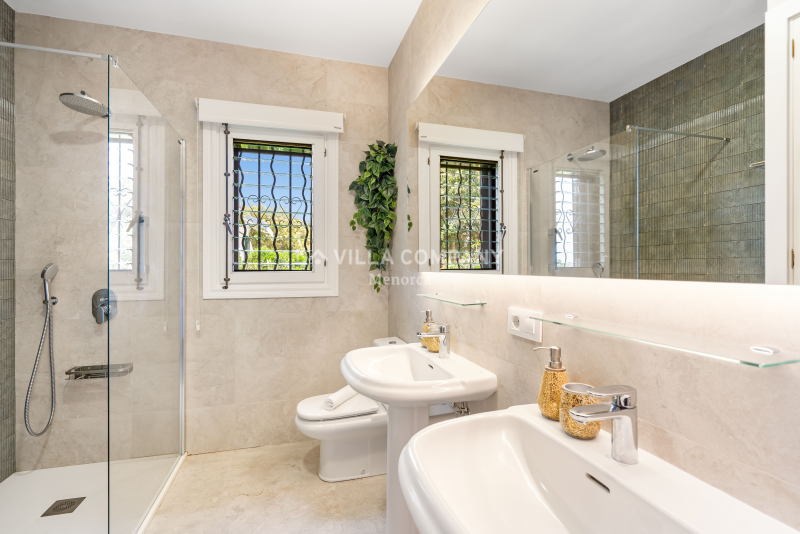 The villa offers three modern and well-appointed shower rooms, providing convenience and comfort for guests. Additionally, there is a bathroom, perfect for indulging in a relaxing soak after a day spent exploring the island’s pristine beaches.