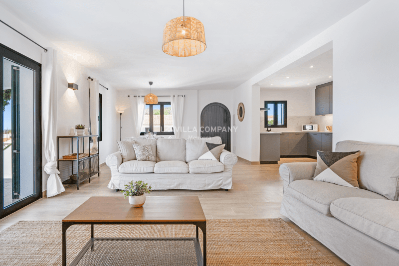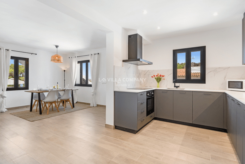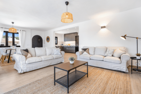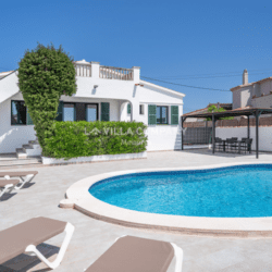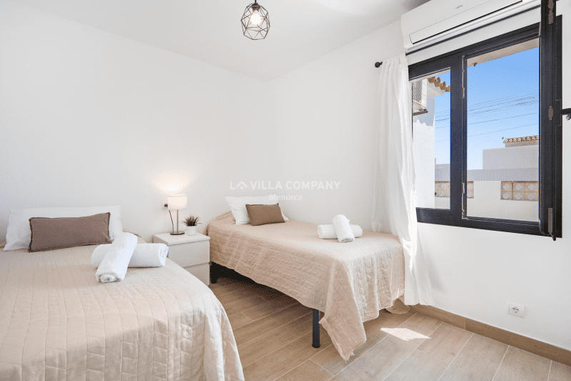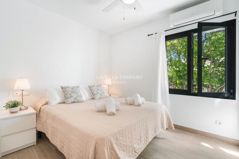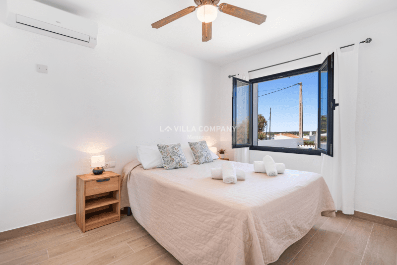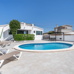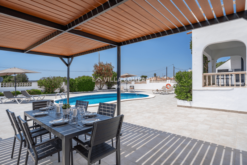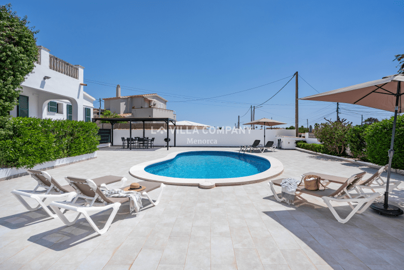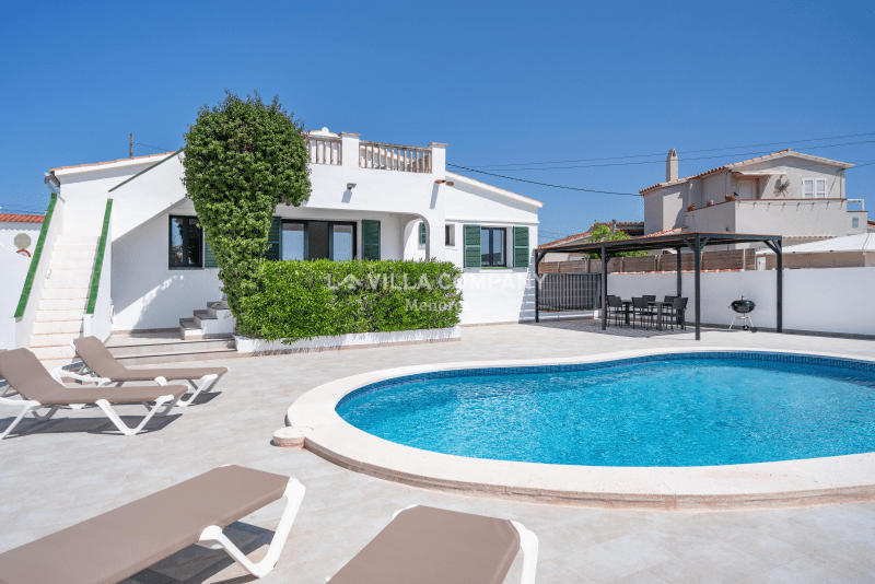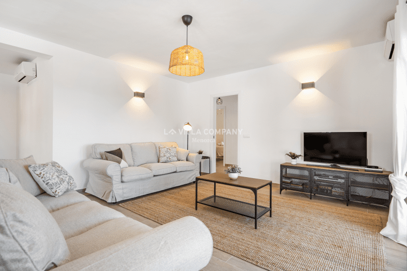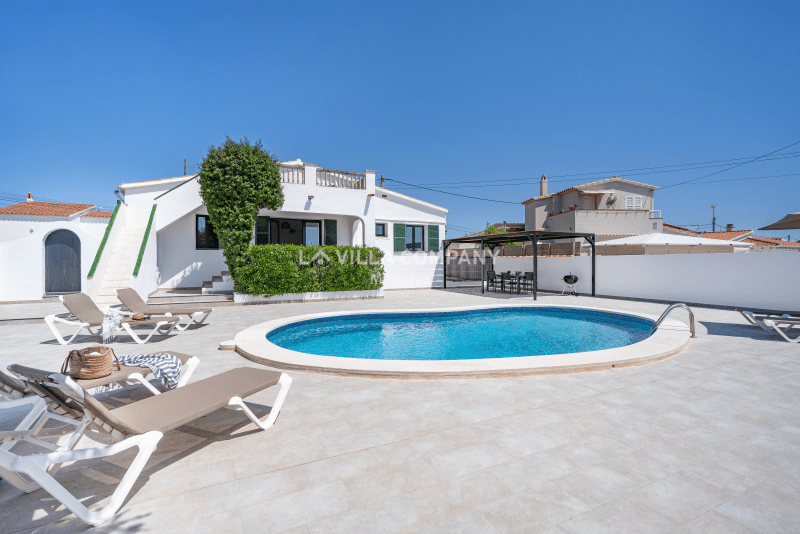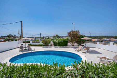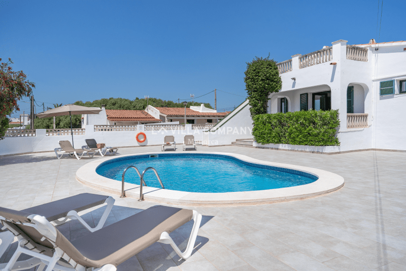 Villa Aranya is situated in a cliff-top tourist resort, Cala’n Porter, on the south coast of the island and only a 10 minute drive from the airport. The town is ideal for families, with a variety of bars, restaurants, supermarkets and souvenir shops, all within a 5 minute walk from the property. The wonderful beach with crystal clear waters can be accessed via road or steps and also offers two beach bars serving local tapas and sangria. Other south coast beaches (Binibeca, Punta Prima, Binisafúa, Son Bou) can be reached in less than 15 minutes by car, and the capital town Mahon is also only a 10 minute drive away. Car hire is available from the resort and a daily bus service runs between Calan Porter and Mahon during the summer months.