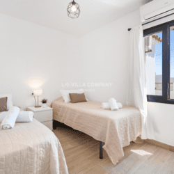 Lounge/dining room with air-conditioning, fully equipped kitchen, 1 double bedroom (1.40m), 1 double bedroom (1.35m), 1 twin bedroom and 2 shower rooms. All bedrooms have air-conditioning and ceiling fans.