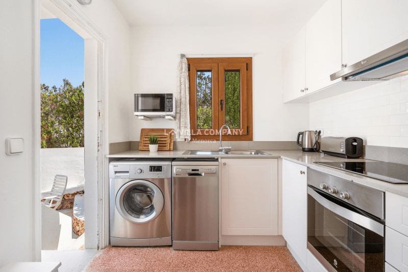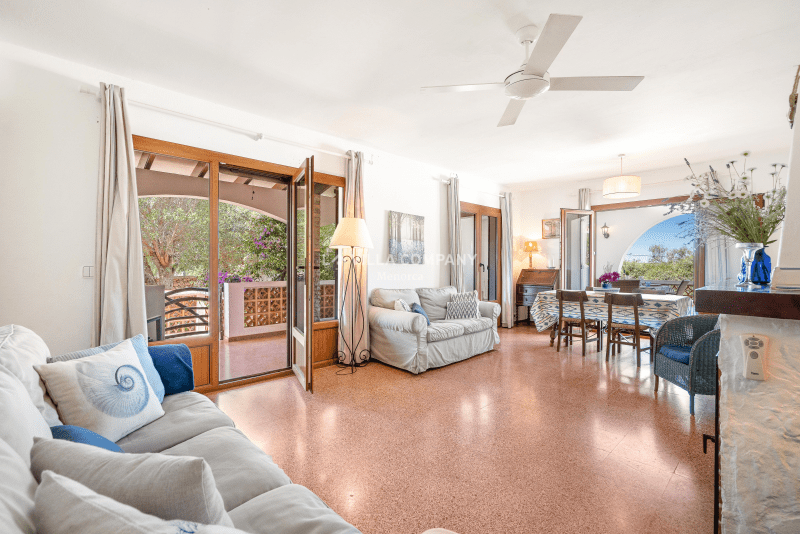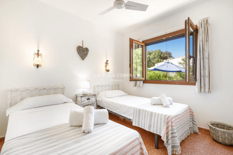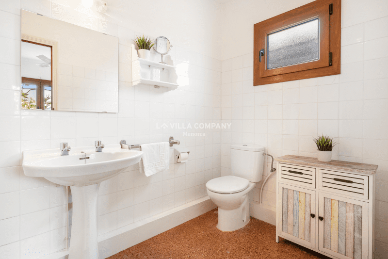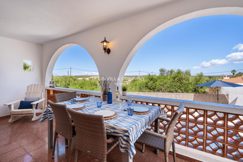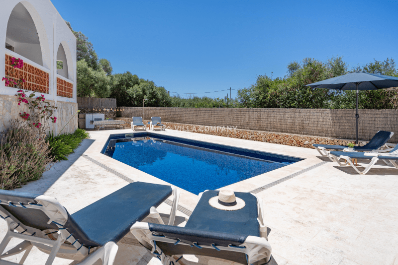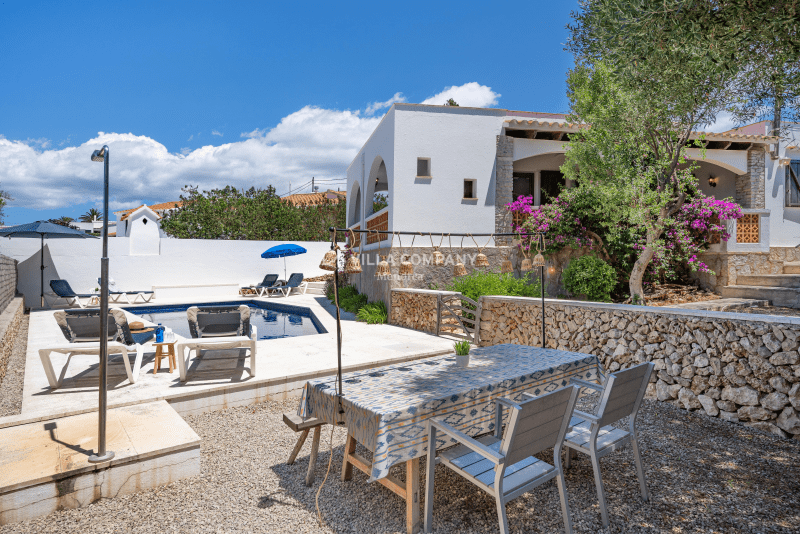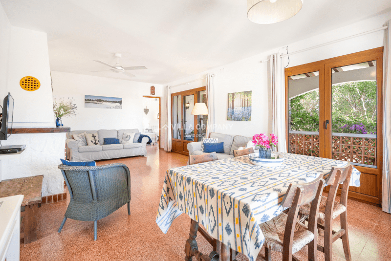 Villa Caterina is situated in a cliff-top tourist resort, Cala’n Porter, on the south coast of the island and only a 10 minute drive from the airport. The town is ideal for families, with a variety of bars, restaurants, supermarkets and souvenir shops, all within walking distance from the property. The wonderful beach with crystal clear waters can be accessed via road or steps and also offers two beach bars serving local tapas and sangria. Other south coast beaches (Binibeca, Punta Prima, Binisafúa, Son Bou) can be reached in less than 15 minutes by car, and the capital town Mahon is also only a 10 minute drive away. Car hire is available from the resort and a daily bus service runs between Calan Porter and Mahon during the summer months.