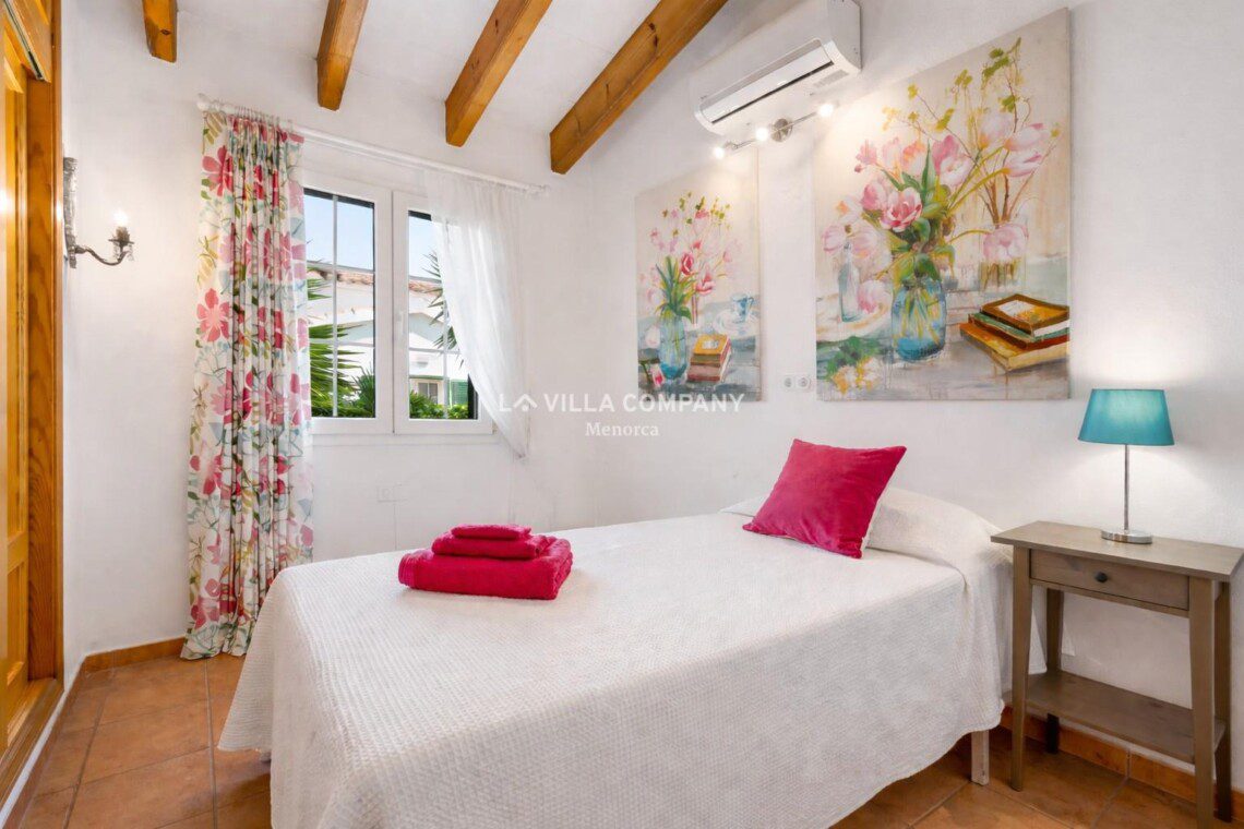 Within walking distance, you’ll find a delightful array of bars, restaurants, supermarkets, and souvenir shops, ensuring that everything you need is right at your fingertips. The stunning beach with its crystal-clear waters is accessible via road or steps, and boasts two beach bars, where you can savour local tapas and refreshing beverages. Plus, other beautiful south coast beaches, such as Binibeca, Punta Prima, Binisafúa, and Son Bou, are just a 15-minute drive away. Additionally, the capital town of Mahon is only a 10-minute drive from the villa, and a daily bus service conveniently connects Cala’n Porter to Mahon.