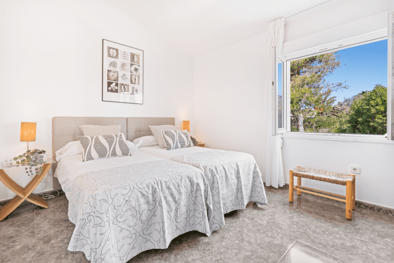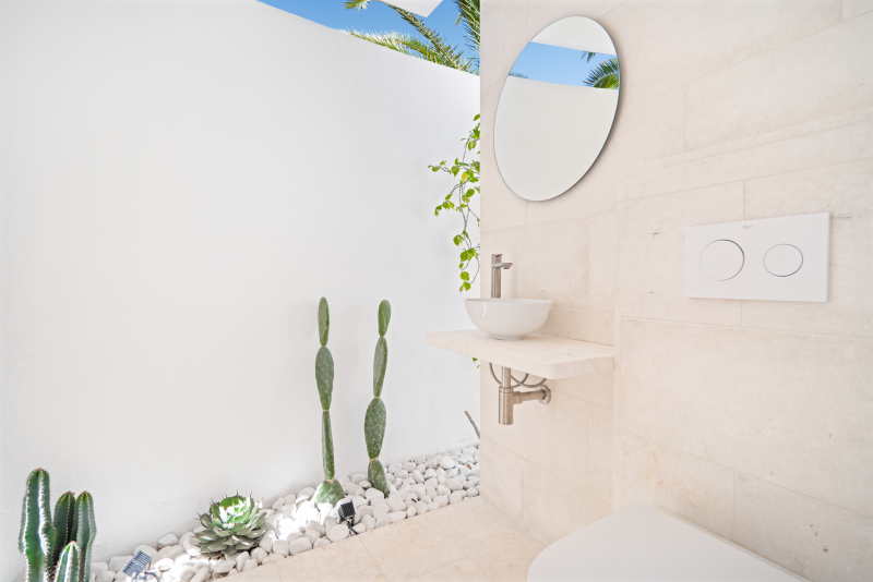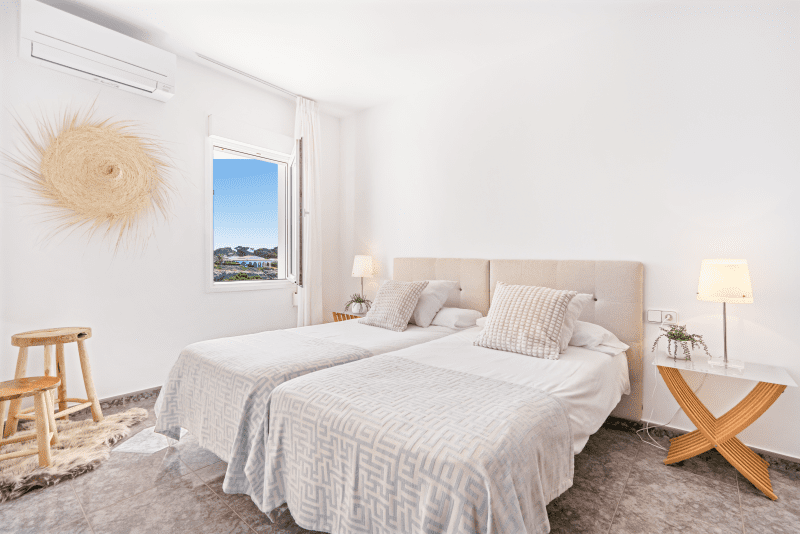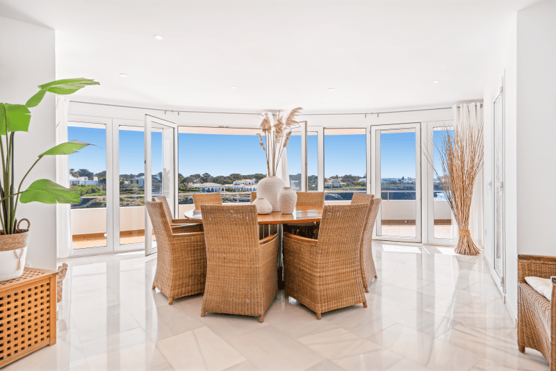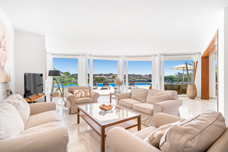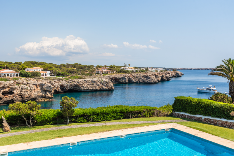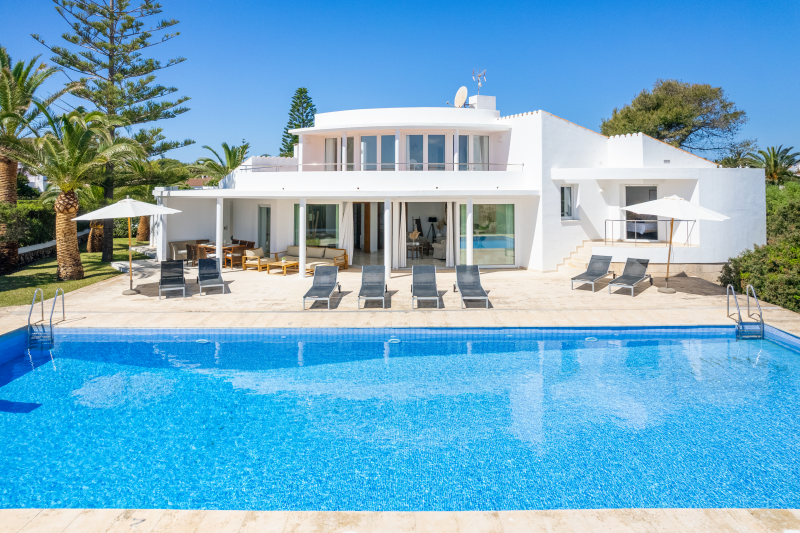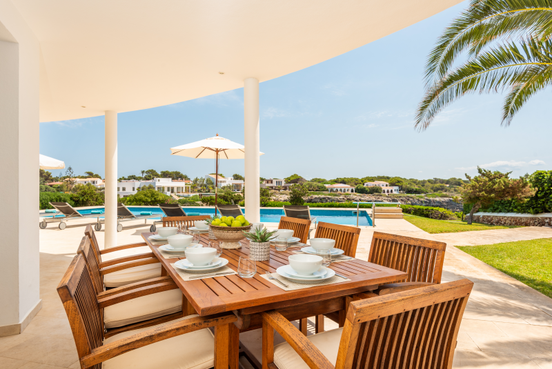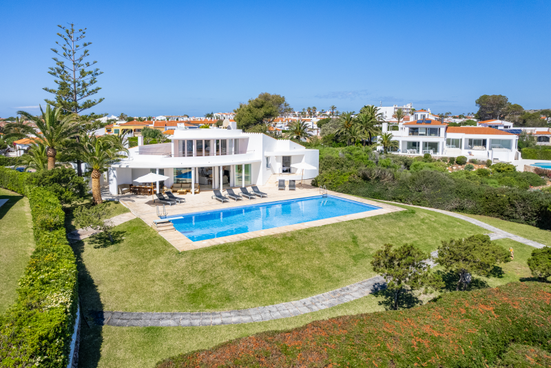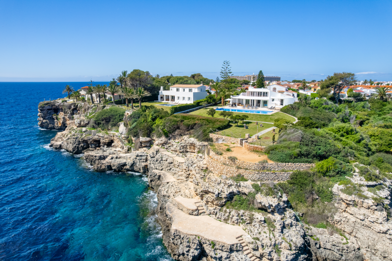 This cliffside villa is located in Cala en Brut, a residential area on the north-western coast of the island with a stunning turquoise-blue cove surrounded by rock platforms. The property is a short walk from the variety of bars and restaurants at the Los Delfines resort and less than a 10 minute drive from the island´s old and charming capital, Ciutadella. The small beaches Cala en Forcat and Cales Piques are within walking distance, and the virgin beaches Algaiarens and Cala Turqueta can be reached within 25 minutes by vehicle.