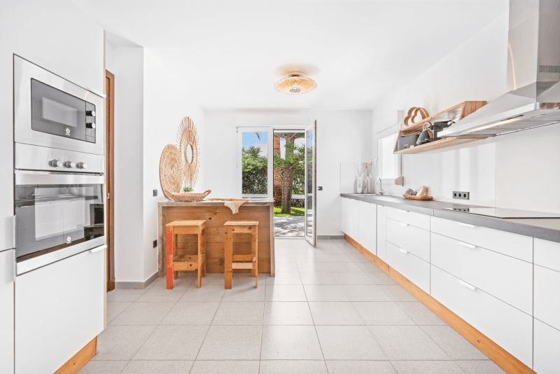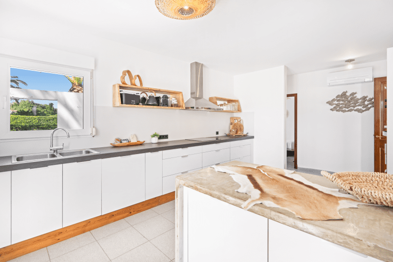 The villa has been elegantly decorated throughout with light and contemporary furniture and is distributed over three floors with air-conditioning in all rooms: